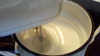 Beat for one minute before placing over the boiling bottom half of the double boiler.